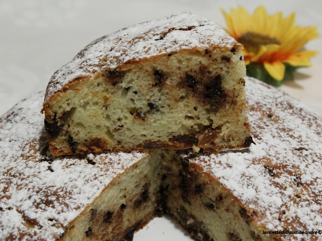Questa torta è veloce da fare e altrettanto veloce finirla da mangiare…. Perché ?…perché è morbida e buona, e al pensare che è senza grassi, ma così ricca di uvetta e cioccolato, è ottima e da la carica che ci vuole per affrontare la giornata !!