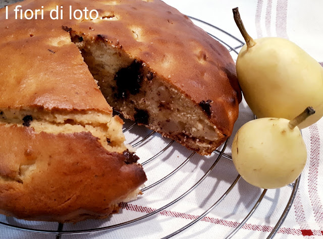 Aggiungere le pere e il cioccolato a pezzi piccoli.