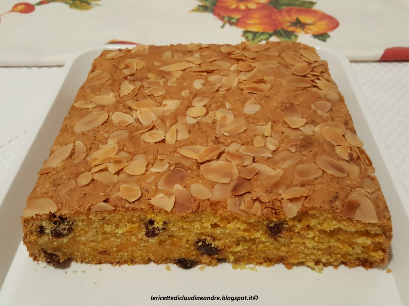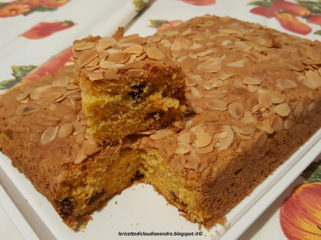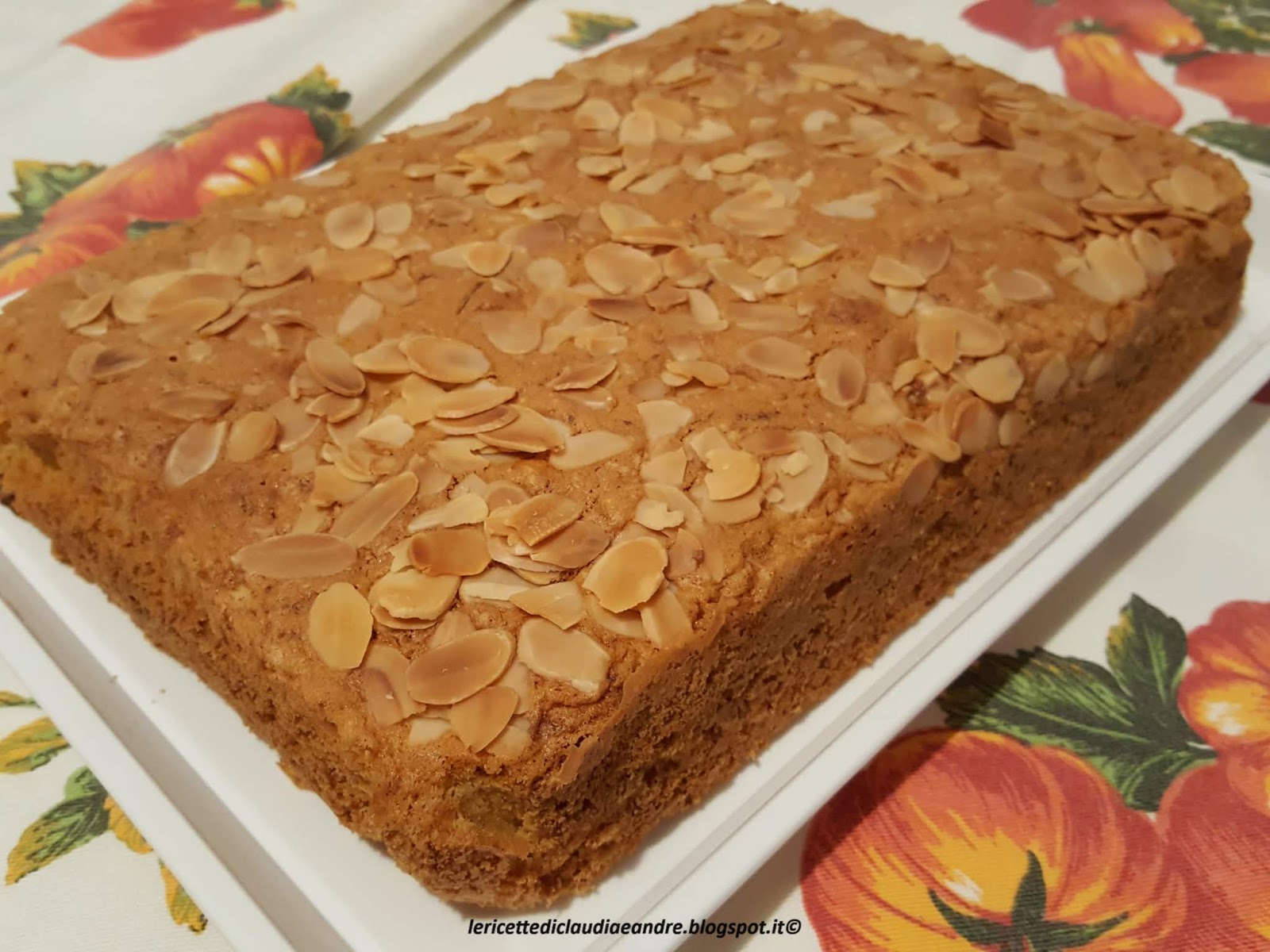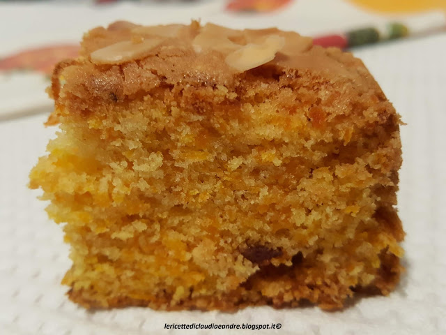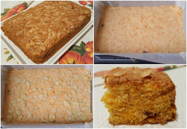 - Versare il composto in uno stampo foderato con carta da forno, io in uno stampo 27 x 17,5 cm, spolverizzare sopra le mandorle in lamelle ed infornare nel forno preriscaldato a 180 °.