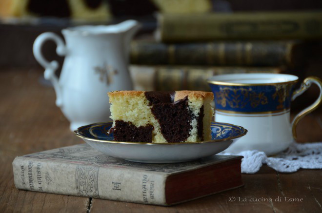 Con l’aiuto delle fruste elettriche montate le uova con lo zucchero, fino a quando non saranno chiare e spumose. Aggiungete, sempre mescolando, l’olio a filo e l’acqua bollente. Quando i liquidi sarano ben assorbiti, aggiungete la farina setacciata con il lievito. Appena l’impasto sarà pronto, dividetelo in due parti, in una delle due aggiungete il cacao e mescolate bene. Imburrate e infarinate uno stampo, nel mio caso ne ho utilizzato uno quadrato di cm 23×23, versate il composto chiaro e poi quello al cacao, non mescolate con la spatola altrimenti rischiereste di non ottenere l’effetto bicolore. Infornate a 170° in modalità statico per circa 40/50 minuti, ricordate però di fare sempre la prova stecchino. Estraete il vostro dolce dal forno e lasciate raffreddare completamente nella teglia, poi sformate e trasferite su una gratella per dolci. Questa torta è perfetta per la colazione o la merenda e si manterrà benissimo sotto la classica campana di vetro.