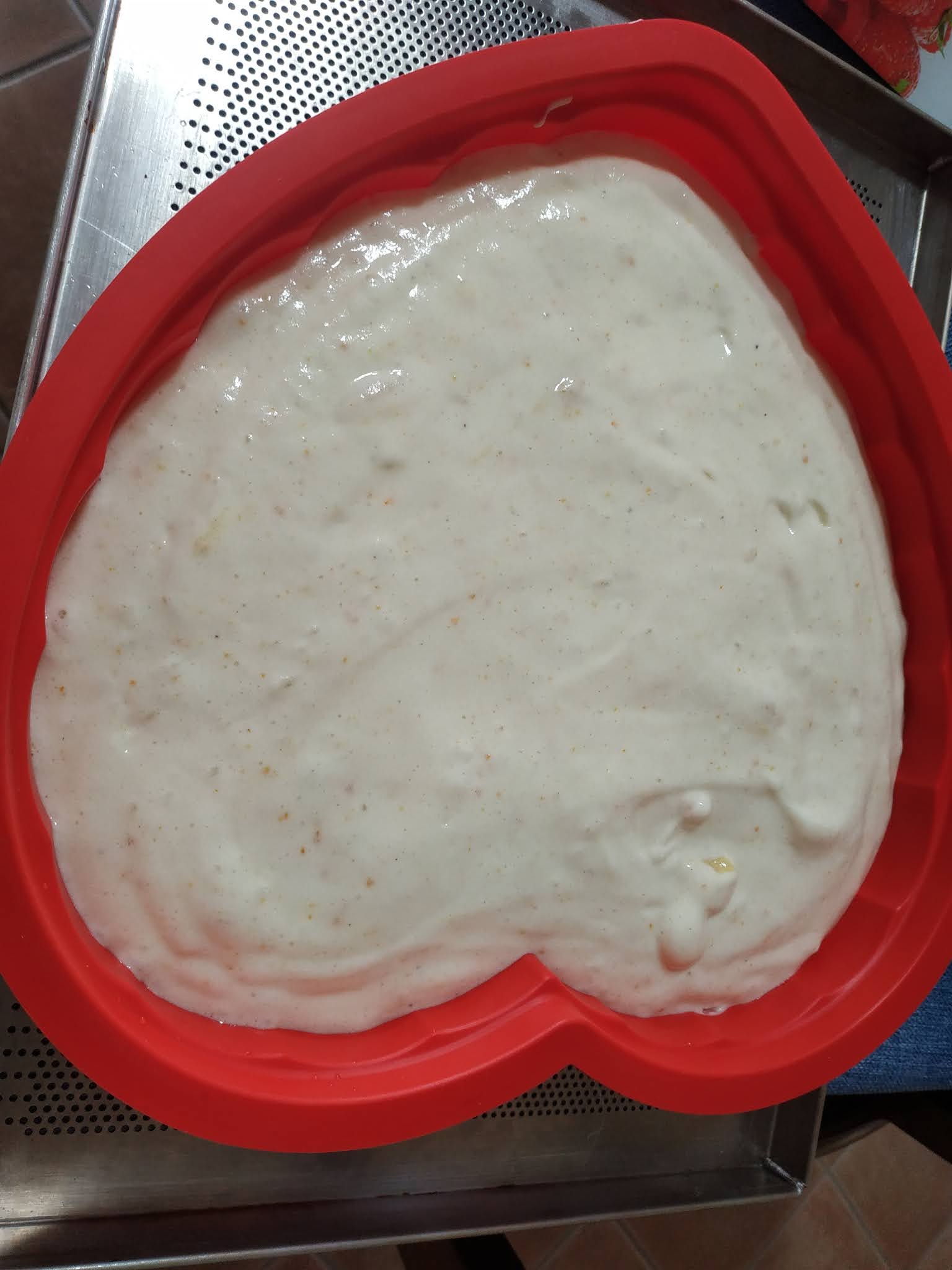 Versate il composto in uno stampo: l’ideale sarebbe lo stampo da chiffon non imburrato; io, siccome volevo imprimere alla torta questa forma particolare, ho utilizzato uno stampo in silicone e il risultato è stato comunque ottimo.