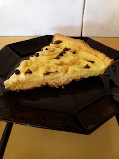 Procedimento : Mettere il latte a scaldare in un pentolino. In un altro mettere l’uovo con lo zucchero e lavorarlo bene, aggiungere gli amidi. Incorporare a filo il latte caldo. Mettere il pentolino sul fuoco e sempre mescolando raggiungere il bollore. Quando la crema si sarà ben addensata toglierla dal fuoco e farla raffreddare mettendo un foglio di carta trasparente per alimenti a contatto con la crema. Nel frattempo che la crema raffreddi ,preparare la frolla. In una ciotola mettere il burro ammorbidito a temperatura ambiente e lo zucchero, amalgamare bene. Aggiungere la buccia grattugiata di un limone ,mettere le uova e lavorare bene. Incorporare poco alla volta la farina e il lievito , lavorare bene tutti gli ingredienti. Formare un panetto e metterlo a riposare per circa 30 minuti in frigo. Riprendere il panetto di frolla e stenderla su di un foglio di carta da forno e dargli la forma per metterla nella tortiera. Bucherellare la frolla con una forchetta, adagiarci la crema su tutta la superficie, mettere i pinoli e se lo desiderare anche le gocce di cioccolato. Infornare in forno già caldo per circa 25/30 minuti a 180° C……… Buon Appetito!!!!!!!!.
