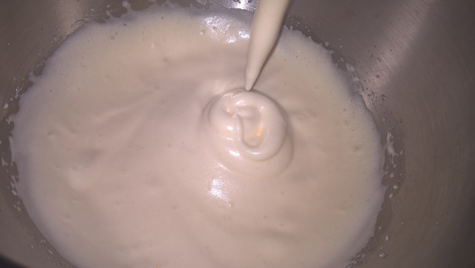 Quando saranno belle spumose, aggiungete 125 g di yogurt alla vaniglia.