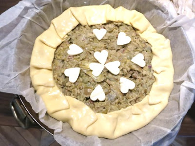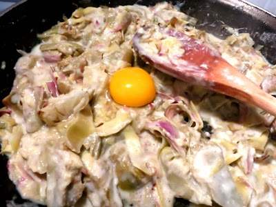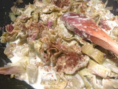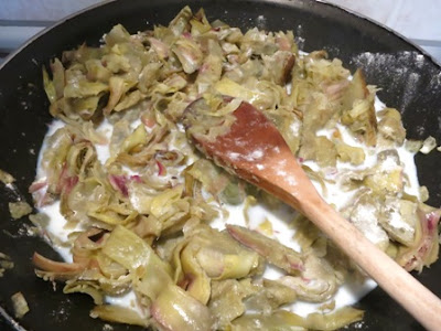 Lei di solito la prepara con spinaci ma la mia era con carciofi che, per ragioni di tempo, non riesce mai a cucinare perché il ci vuole un po’ per pulirli .
