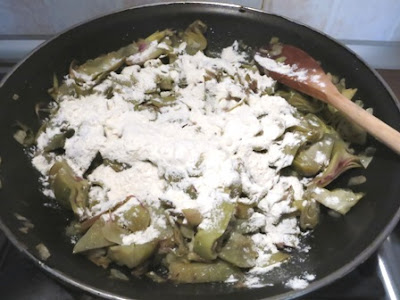 Quando i carciofi si sono rosolati bagnarli con poca acqua calda .
