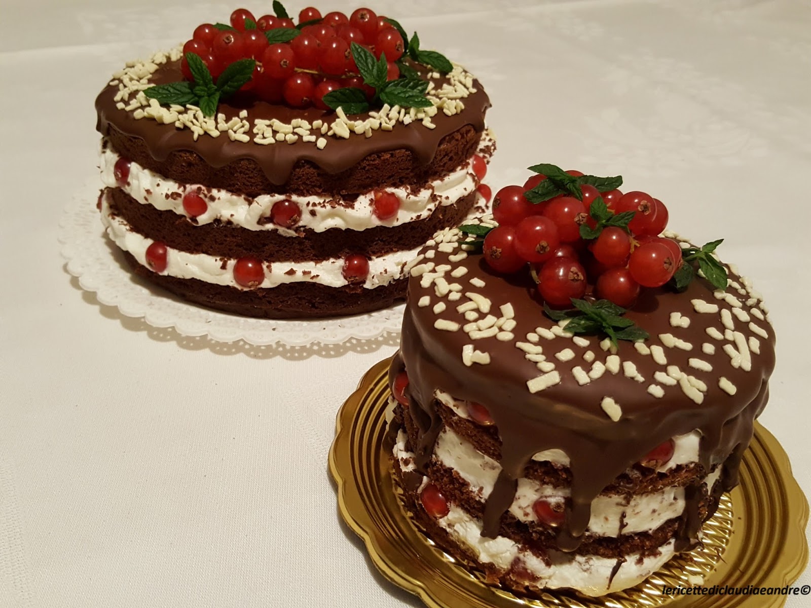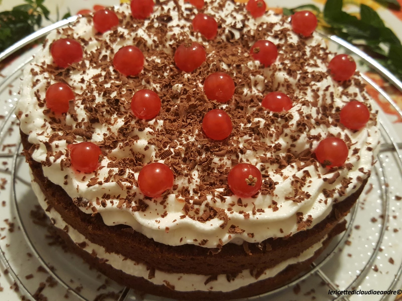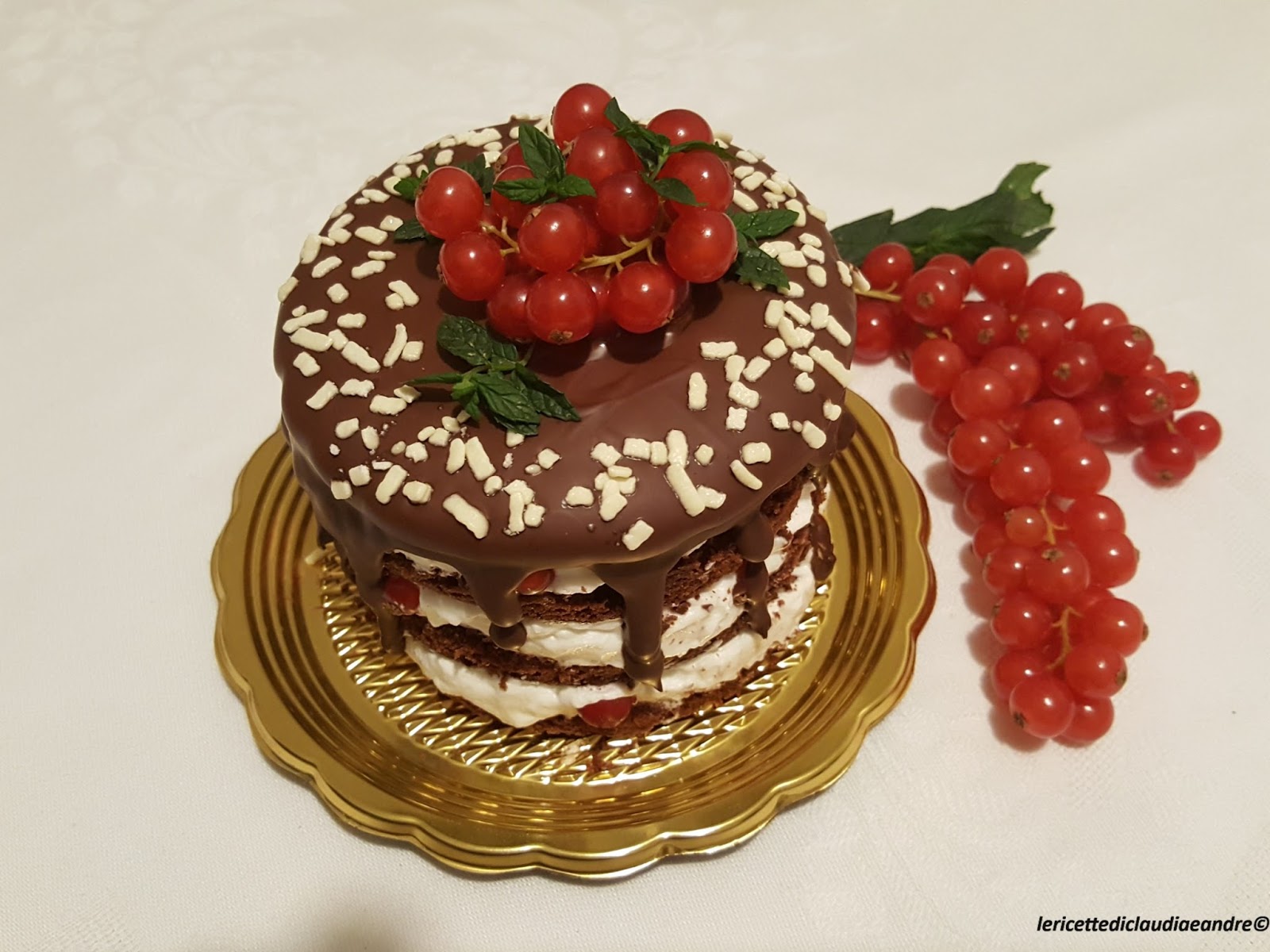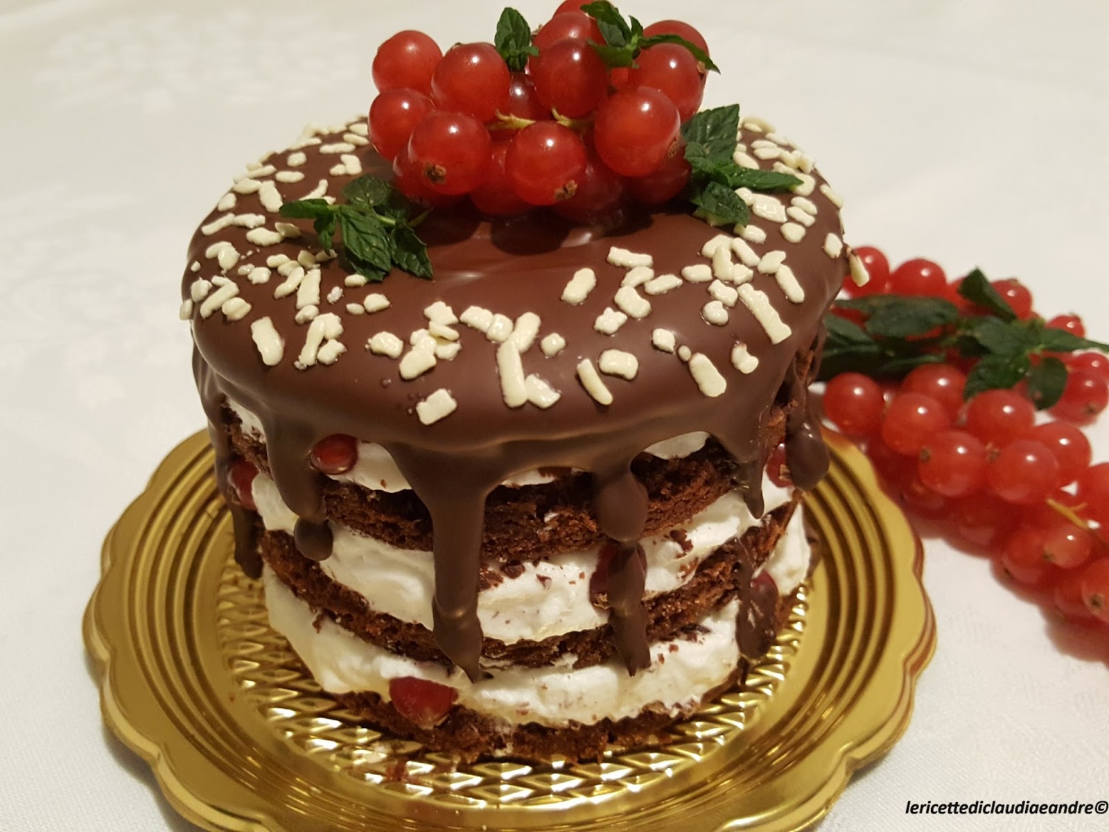Torta di cioccolato al olio, zucchero di canna, panna e ribes