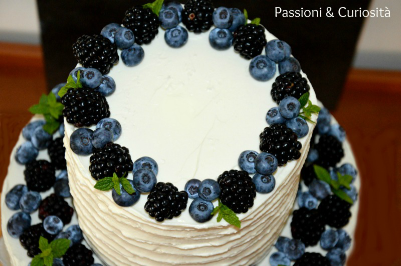 Montare ora gli albumi a neve ferma e aggiungerli al composto con un movimento dal basso verso l’alto facendo attenzione a non smontarli. Quando il tutto è ben amalgamato aggiungere la vanillina e il lievito. Preriscaldare il forno a 180°C; imburrare due teglie apribili di 26 cm di diametro, versare l’impasto e infornare per 40 minuti. A fine cottura sfornare i dolci, lasciarli raffreddare e toglierli dalle teglie, sistemandoli capovolti sulle griglie per farli raffreddare. Preparare la crema bianca Iniziare a preparare la crema bianca, montando il mascarpone con il latte condensato, intanto montare la panna e poi aggiungerla alla crema al mascarpone, profumare con la vanillina. Montare la torta Tagliare a metà ciascuna delle due torte, ammorbidire la nutella per renderla spalmabile e stenderne metà sullo strato inferiore del dolce, poi farcire con la crema al mascarpone, stendere la nutella sull’altra metà (lato che va a contatto con la crema bianca). Decorare la torta Poi aggiungere mirtilli e more o quello che la vostra fantasia vi suggerisce ! Buon Lavoro e Buon Assaggio !!!