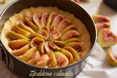 Cuocere in forno già caldo a 180°C per 30 minuti circa, controllate che i fichi in superficie si asciughino senza bruciare (la mia funzione del forno era per torte lievitate, cioè il calore proviene dal basso).