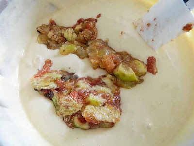 Amalgamare bene gli ingredienti con lo sbattitore ed infine aggiungere i 3/4 dei fichi.