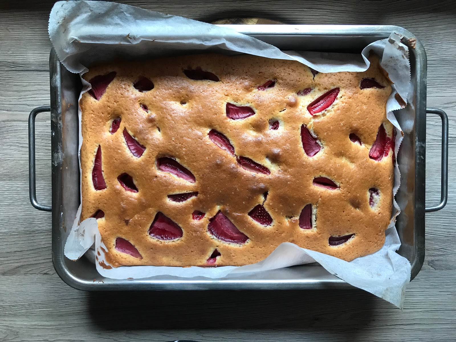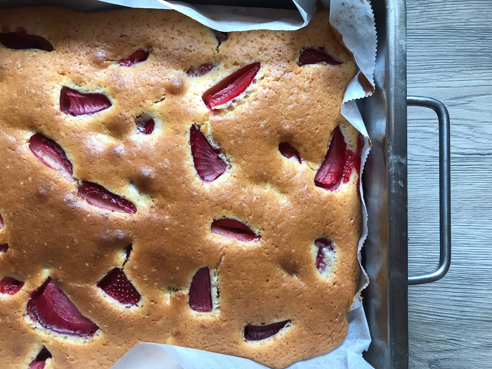 Sbattere le uova con lo zucchero. Aggiungere la farina e il lievito setacciati e la frumina. Mescolare aggiungendo il burro sciolto a bagno a maria e la fiala di vaniglia. Per ultimo aggiungere le fragole già tagliate e mescolare insieme così da amalgamare bene le fragole nell’impasto. Se l’impasto dovesse restare troppo solido aggiungere poco alla volta un filo di latte. Infornare – A FORNO GIA’ CALDO – a 180° per 40 minuti.