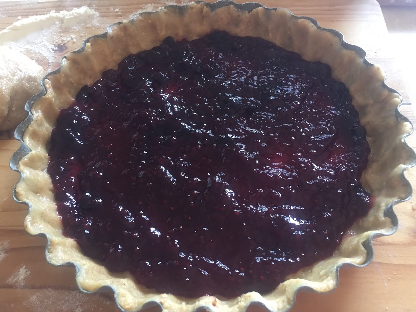 Trascorso il tempo con una parte della frolla rivestite una tortiera da 22 cm precedentemente imburrata e infarinata e farcitela con la confettura.