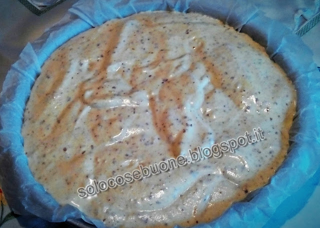 Versare in una teglia rotonda rivestita di carta forno e cuocere a 150° per 50 minuti.