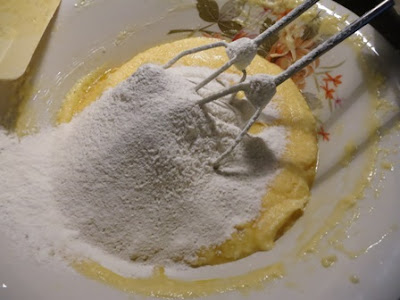 Quindi la farina setacciata precedentemente con il lievito, il pizzico di sale e la vanillina..