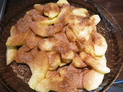 Porre le fette di mela in un largo contenitore e cospargerle uniformenete con lo zucchero e cannella..