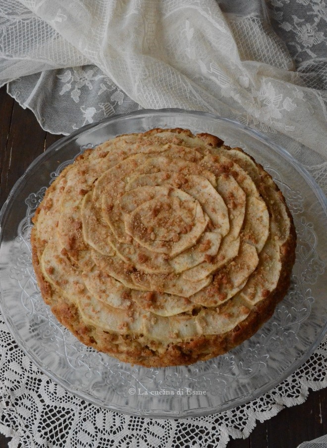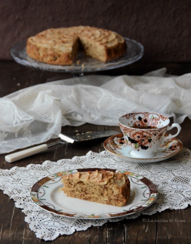 La torta di mele è uno dei miei dolci preferiti, una di quelle ricette del cuore per cui ogni boccone mi rievoca immagini di casa, di mamma e di nonna … ricordi d’infanzia. Ora l’adoro, ma quando ero piccola la sua consistenza non mi piaceva molto, eppure ogni volta che nonna la preparava, quel profumo che inondava la cucina mi faceva sentire tanto coccolata. Nonna Evelina era una donna semplice, bassina e grassottella, ma con un cuore enorme ed io le volevo molto bene, nei miei ricordi la vedo ancora in cucina a tirar tagliatelle, a montare uova e a impastare, ma anche nell’orto a raccogliere frutta e verdura, e poi ricordo le merende insieme … quelle semplici e golose merende di altri tempi, come pane e fichi (con i fichi appena raccolti e il pane fatto in casa da lei) o pane vino e zucchero. Ricordo i suoi grandi sorrisi e i suoi abbracci, che ancora oggi mi scaldano il cuore. Maria, invece, la nonna di parte paterna, era l’esatto opposto. Alta, magra, elegante, bellissima e sofisticata, lei le torte le mangiava con la forchettina d’argento, non le cucinava, a quello ci pensava la cuoca. Credo che nonna Maria non abbia mai cucinato nulla in vita sua. Da nonna Evelina, nella sua casa di campagna, imparavo a fare il vino e ad andare a cavallo, mi sporcavo e ridevo tanto. Da nonna Maria, imparavo a scegliere la forchetta corretta da usare e a ricevere gli ospiti. Dovevo stare attenta a non rovinare i mobili e a non sbriciolare sui tappeti persiani, si sorrideva educatamente, perché “le risate non sono adatte ad una signorina“, ma con lei ho imparato ad apprezzare la musica classica e l’arte. Ho imparato ad amare il bello in tutte le sue forme che si tratti di un mobile, un vestito, un gioiello o un quadro. Due donne opposte, appartenenti a mondi differenti che mi hanno entrambe amato e che ho amato, due meravigliose nonne che, ognuna a suo modo, mi hanno dato tantissimo e che indiscutibilmente hanno contribuito a rendermi ciò che sono.
