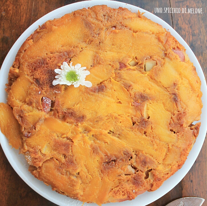 Una volta cotta, capovolgete la torta di mele e mango su un bel piatto, così mostrerete la parte più FRUTTOSA! :-)