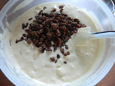 e amalgamarle con il composto di uova poi strizzare bene l’uva sultanina e aggiungerla,