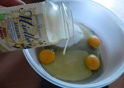 In una capiente ciotola montare le uova con lo zucchero, Mielbio Arancio