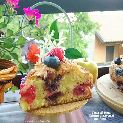 Da quando ho comprato mirtilli e lamponi al supermercato -oltre a un’irrefrenabile voglia di mangiarli tutti, uno per uno a partire dai lamponi- la cucina si è riempita di colore e dell’essenza del bosco e dei prati estivi.