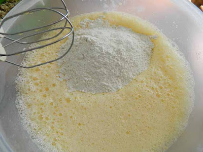 fino ad ottenere un composto chiaro e spumoso, a questo punto aggiungere la farina setacciata