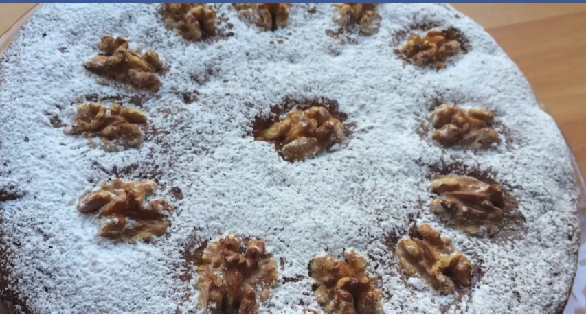 Ingredienti: 100 g di zucchero di canna 100 g di miele (millefiori o altro miele più aromatico a seconda dei gusti) 2 uova 250 g di ricotta vaccina 200 g di farina 1 pizzico di sale 1 bustina di lievito per dolci 50 g di noci tritate molto grossolanamente (o appena spezzate con le mani) + 50 g circa di noci intere per la decorazione Zucchero a velo per decorare Procedimento: In una ciotola mescolare le uova con lo zucchero e il miele, aggiungere la ricotta ed amalgamare; aggiungere la farina, il sale e il lievito e mescolare con una frusta fino ad ottenere un composto omogeneo. Incorporare le noci tritate e trasferire in una tortiera imburrata ed infarinata, decorare con le altre noci ea infornare per 30 minuti a 170° in forno statico. Guarnire con zucchero a velo.