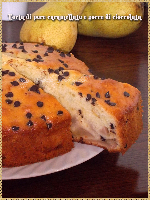 Di torte di pere ne ho provate molte, sempre con le pere crude. Questa volta ho voluto provare a cuocere le pere con dello zucchero e le ho leggermente caramellate. Poi nella torta ho aggiunto delle gocce di cioccolato che le pere si abbinano perfettamente.