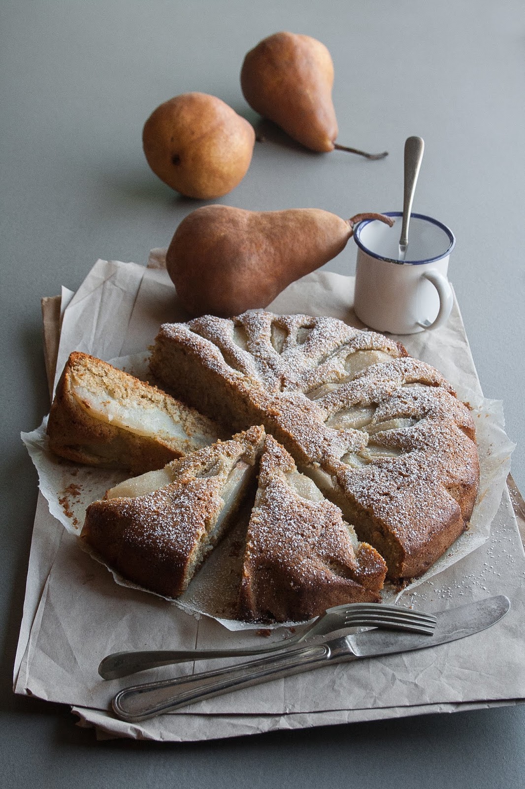 La ricetta prevede un impasto morbido fatto con burro, zucchero di canna, uova, un misto di farine tra cui quella di grano saraceno e fettine di pere.