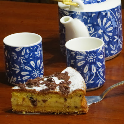 Oggi abbiamo deciso di comune accordo di preparare un dolce con la ricotta, arricchendola con pezzetti di cioccolato e uva sultanina residui delle feste natalizie.