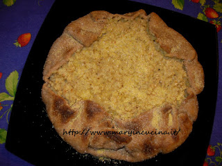 Lessare il riso per 45 minuti, eliminare l’acqua di cottura, aggiungere un filo d’olio, mescolarlo e farlo raffreddare. Nel frattempo impastare la sfoglia e farla riposare una mezz’oretta. Stendere la sfoglia con il matterello direttamente sulla cartaforno ed inserirla nella tortiera. Sciogliere la farina di ceci con l’acqua (tanta quanta ne serve per ottenere una pastella morbida), aggiungere sale e pepe e versare nel riso, mescolare bene e versare il composto ottenuto nella sfoglia. Richiudere i bordi della sfoglia sull’impasto e spolverizzare con un po’ di farina di mais. Infornare a 190° per 25 minuti. Si può mangiare calda ma è buonissima anche a temperatura ambiente.