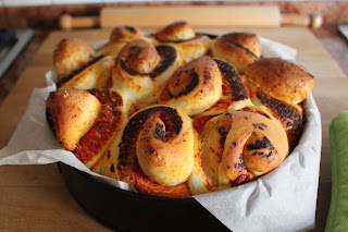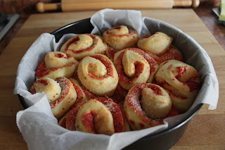 Posizionare i rotoli in una tortiera distanziandoli leggermente l’uno dall’altro per permettere la seconda lievitazione.
