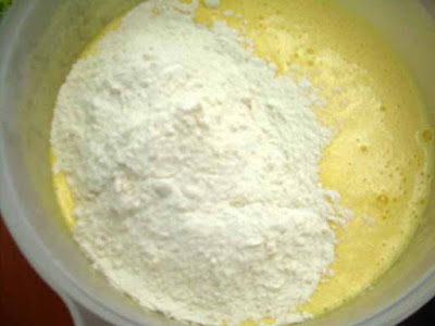fino ad ottenere un composto gonfio e spumoso, aggiungere la farina setacciata e continuare a mescolare,