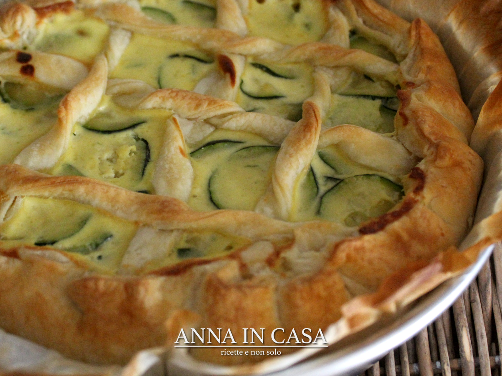 Versare il composto di porri nella tortiera, livellarlo. Sopra i porri, versare l’impasto con le zucchine, a piacere decorare e ripiegare il bordo tutto intorno verso il centro.