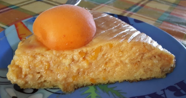 Al momento opportuno porre il dolce e decongelare in frigo per alcune ore quindi decorarlo lungo la circonferenza con fettine di albicocche e al centro come appare in foto …