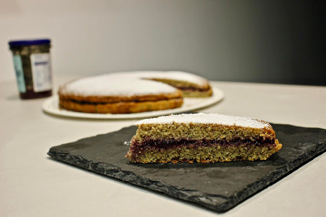 Una volta raffreddata, tagliate il dolce a metà utilizzando un coltello dalla lama lunga,sollevate la parte superiore e versate la marmellata sulla base.