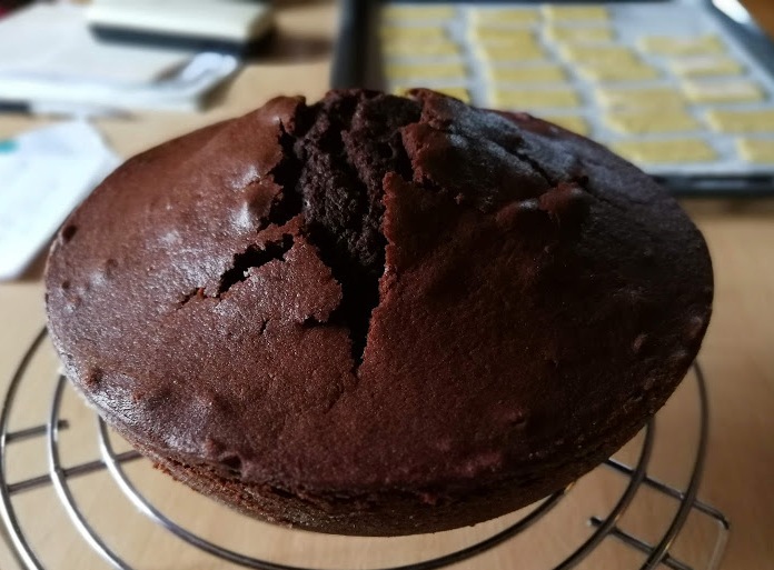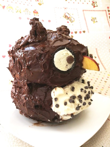 Avevo solo uno stampo a semisfera per il corpo del gufo e ho preferito cuocere in tre tempi diversi le parti che componevano la torta.