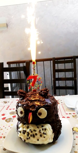 A distanza di tempo mia figlia mi ha detto:” Guarda che Giulia non si è dimenticata della torta “Gufo”.