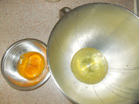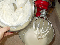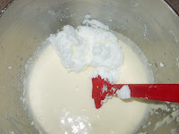 Separare i tuorli dagli albumi. Battere quest’ultimi con una frusta a neve. In una ciotola stemperare la ricotta ed il mascarpone lavorandoli un pochino.