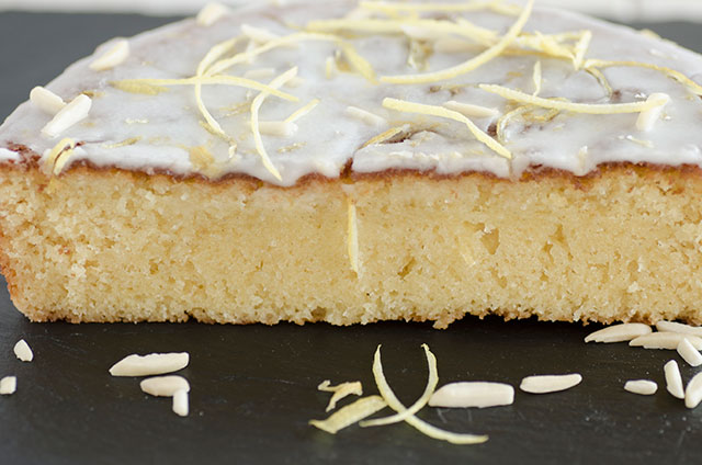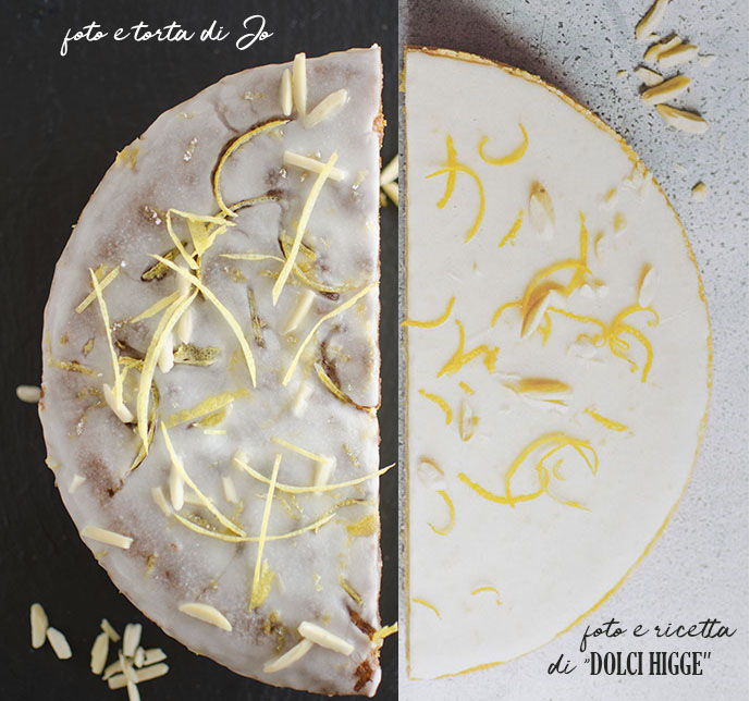 Stendete la glassa sulla torta e completa con mandorle tritate e filetti di scorza di limone.