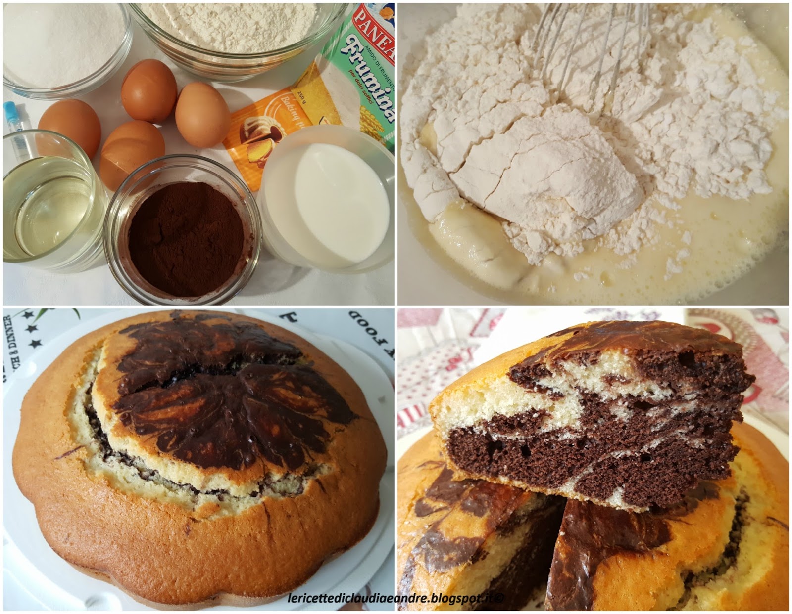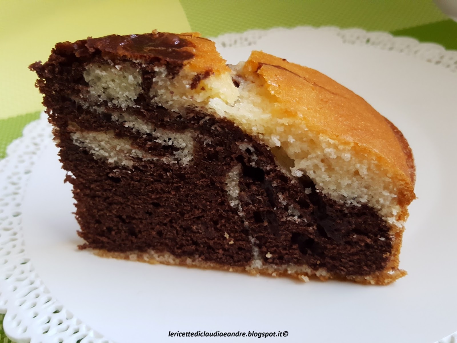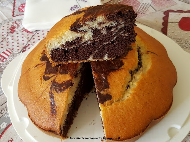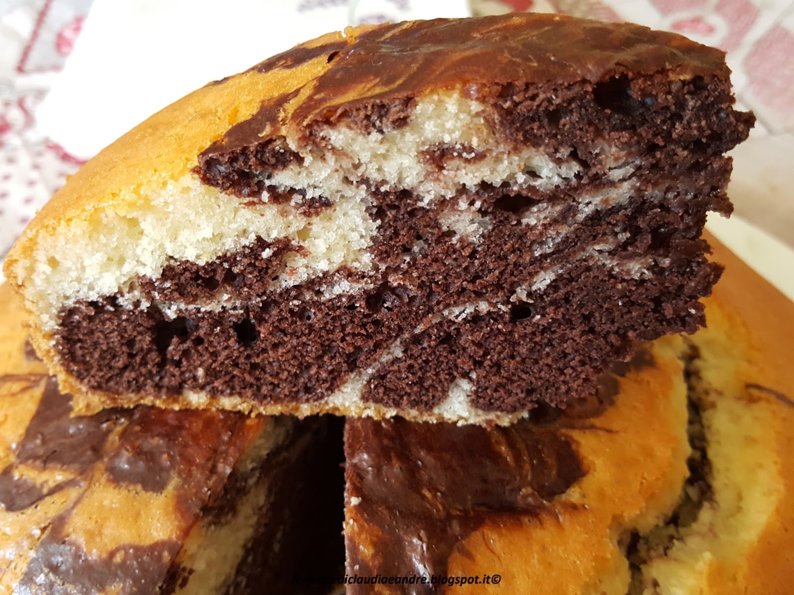 - Mettere l’impasto al cacao ottenuto sopra l’impasto bianco, a cucchiaiate e dopo con uno stecchino, girare nel impasto per dargli quel tocco in più di marmorizzato, io l’ho fatto poco perché ero di fretta e non mi era venuto proprio il top, ma il gusto era buonissimo.