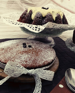 Appena sfornate mettete a fondere una tavoletta di cioccolato bianco e versatelo sulla torta ancora tiepida spargendolo abbastanza uniformemente. Cospargete di zucchero a velo appena si rapprende il cioccolato.