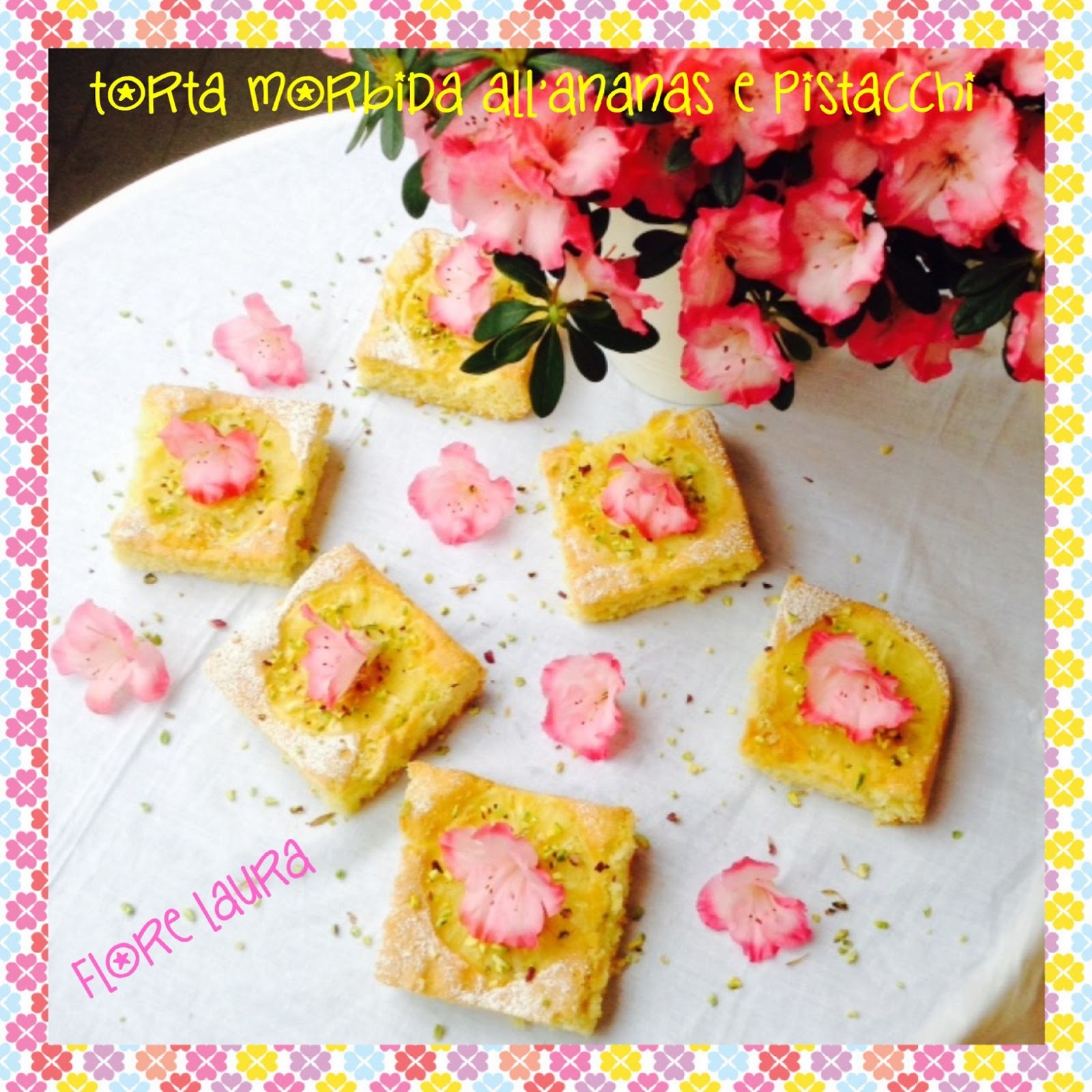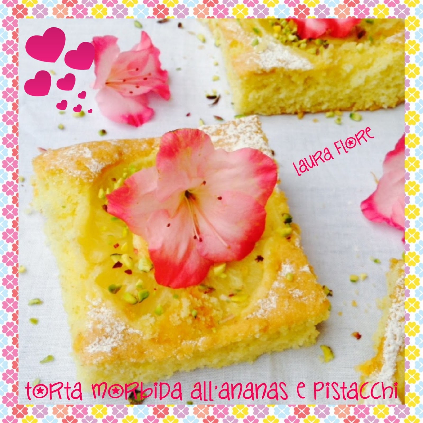 Buongiorno cari amici, oggi per la colazione vi propongo una sofficissima torta all’ananas e granella di pistacchi! Un dolce meraviglioso che mi ha conquistato al primo sguardo…quando l’ho vista nel suo bellissimo blog, me ne sono innamorata. Immaginate di chi sto parlando…ma dai, della blogger più fashion del web!