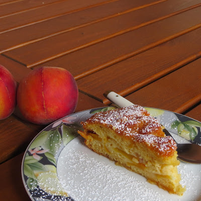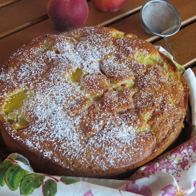 Una torta con le pesche fresca e sfiziosa, un dolce genuino che profuma di estate e di merende all’aperto “tempo permettendo”…