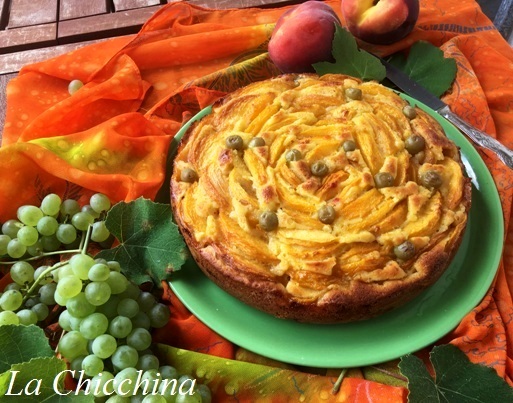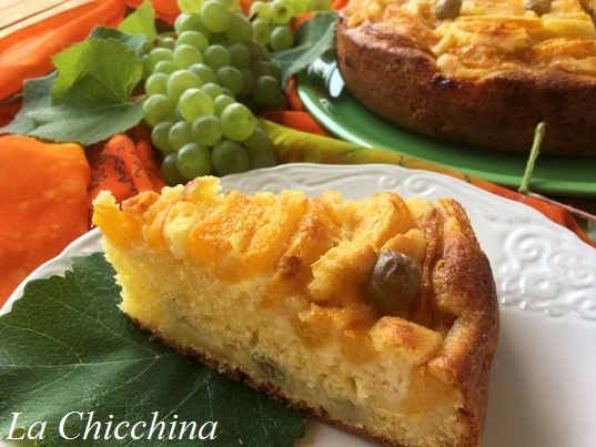 Oggi vi parlo di una torta che dire buona è un po’ riduttivo: morbida, dolce e profumata, è perfetta fredda da frigorifero… Proprio una torta golosa, senza però contenere creme o farce supercaloriche: solo tanta, ma tanta frutta (pesche e uva per la precisione).