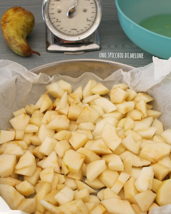 L’importante è METTERE TANTE PERE, perché in questa torta ce ne vanno davvero un sacco! Così, come nella TORTA di MELE.
