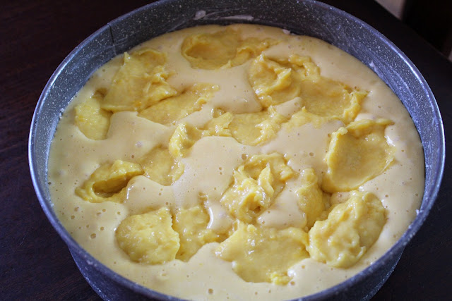 La crema viene aggiunta a cucchiaiate all’impasto della torta che, lievitando, la incorpora.