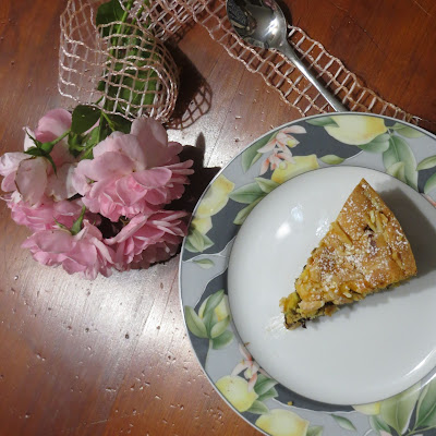 Coprite con il secondo strato di pasta e sigillate bene i bordi del dolce, ricoprite anche con le mandorle tagliate a lamelle
