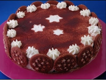 Mettete la torta pan di stelle in frigo per almeno due ore. Togliete la cerniera dalla torta pan di stelle e ricoprite di panna. A questo punto trucchetto numero due: se volete fare dei disegni sulle torte che andranno poi spolverate di cacao o zucchero a velo e non avete stencil o semplicemente vi scocciate di ritagliarli su carta da forno, potete riempire dei taglia biscotti con della carta, facendo attenzione che non ci siano spazi. A questo punto mettete i taglia biscotti (o delle stelline ritagliate sulla carta da forno) sulla torta pan di stelle e spolverate col cacao, Togliete le stelline e finite di guarnire la torta pan di stelle con dei ciuffetti di panna e dei biscotti sui lati. Fate riposare la ttorta pan di stelle un paio d’ore prima di servire.