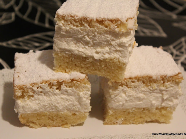 - Tagliare a quadrotti e servire cosparsa di zucchero a velo in abbondanza.