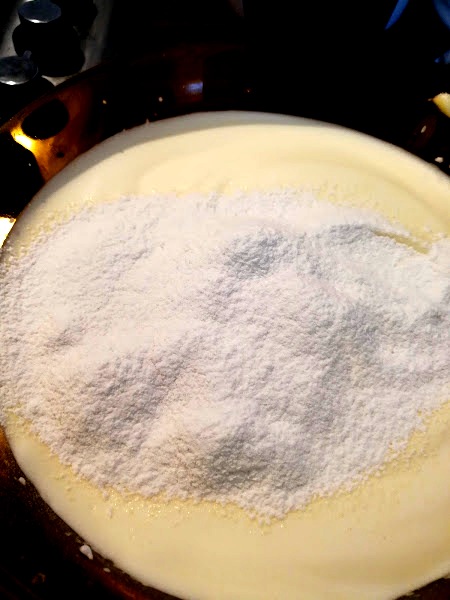 Versare in un pentolino il latte, lo zucchero a velo e il burro.