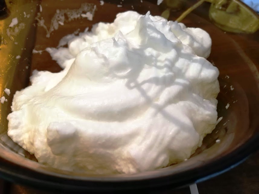 Come appare in foto gli albumi ben montati devono quasi riempire la scodella